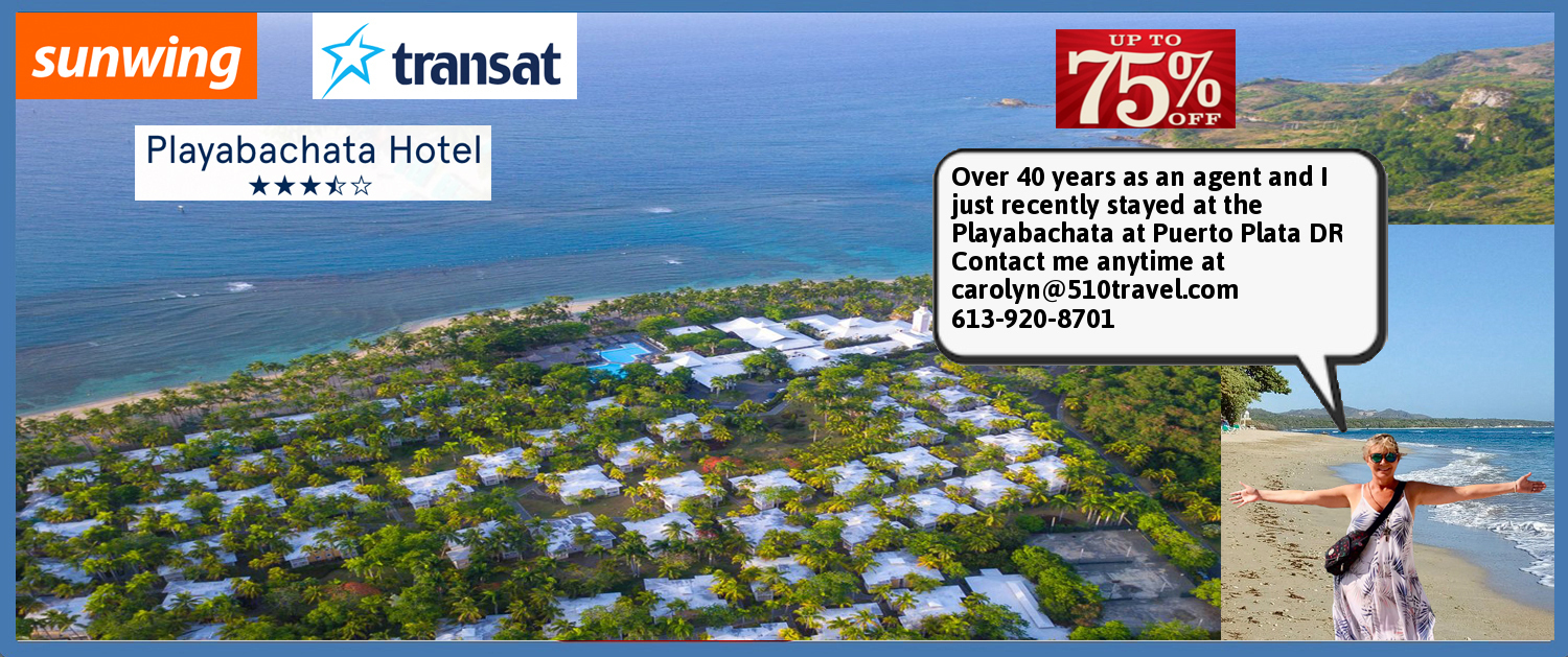 I recently returned from the Playabachata Resort just west of Puerto Plata in the Dominican Republic. The below links will connect you to Sunwing and Air Transat deals to this resort but remember to contact me for a detailed conversation regarding this resort and possible further discounts that are not available online.